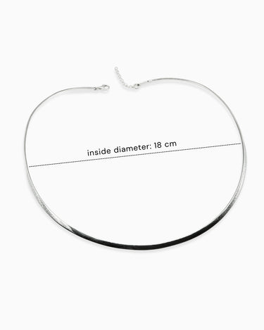 The Silhouette Necklace is a whisper-thin choker made from solid 925 sterling silver, designed to trace the neckline with clean, sculptural elegance. Its fluid curve catches light with every move—quietly daring, endlessly refined.