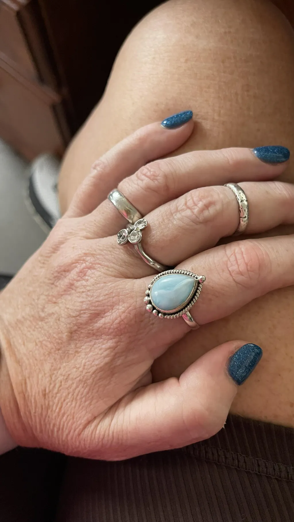 Larimar is a natural stone so shades and tones of blue vary from one piece to another. If there is a stone shade you would prefer, please let us know, by adding a note to your order. We will do our best to accommodate your preference. Thank you!