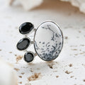 Dendritic Agate and Black Tourmaline Ring - One of a Kind