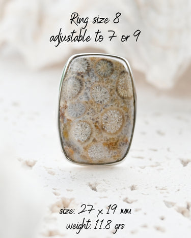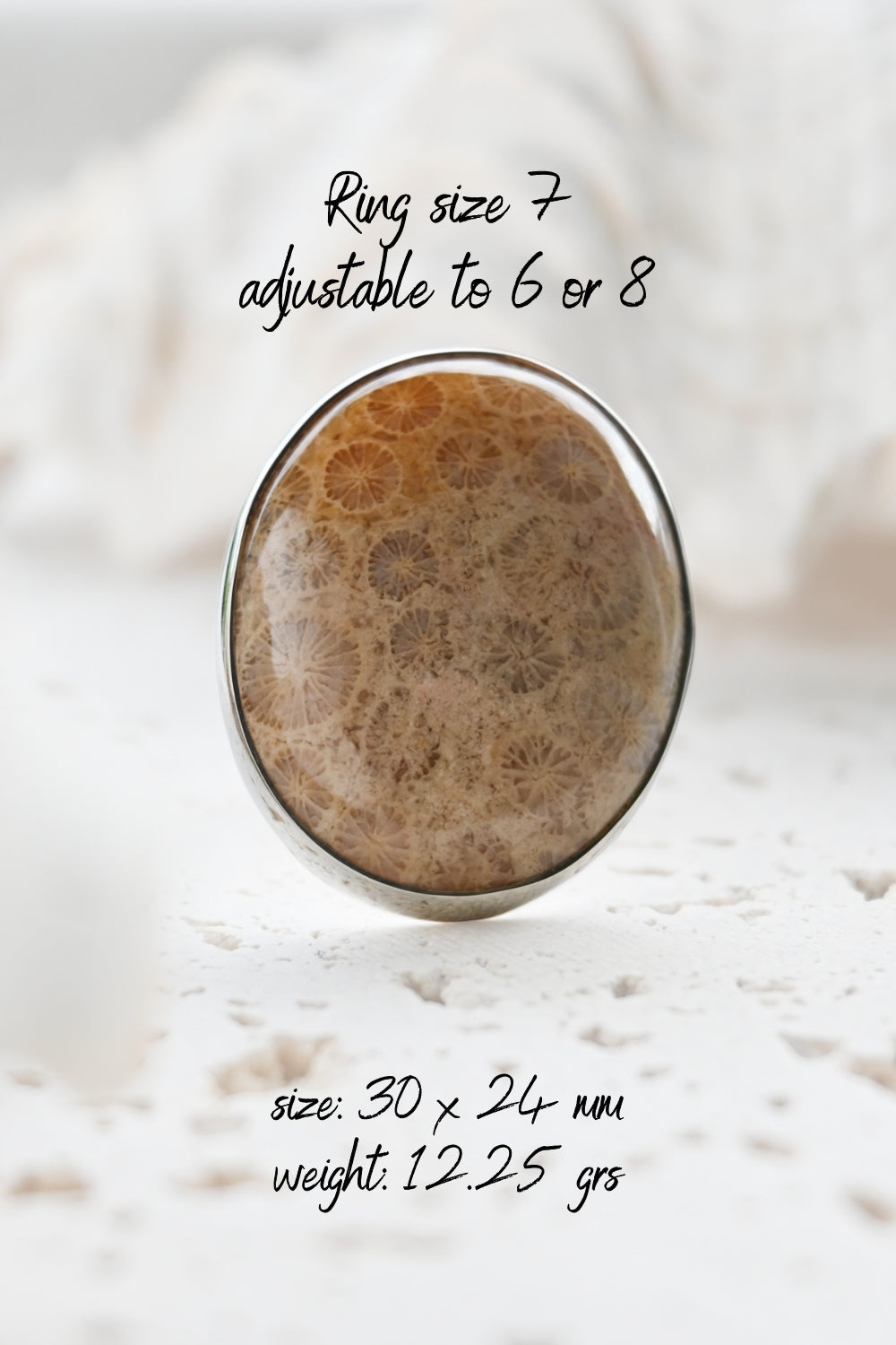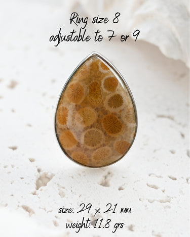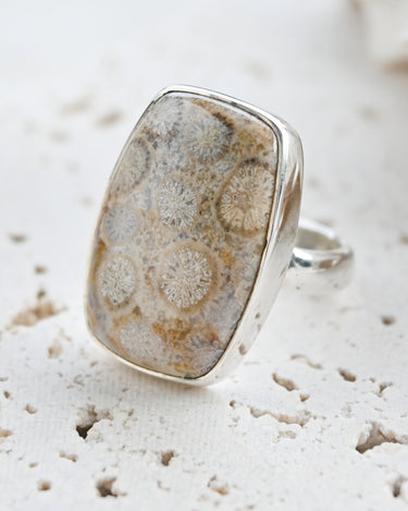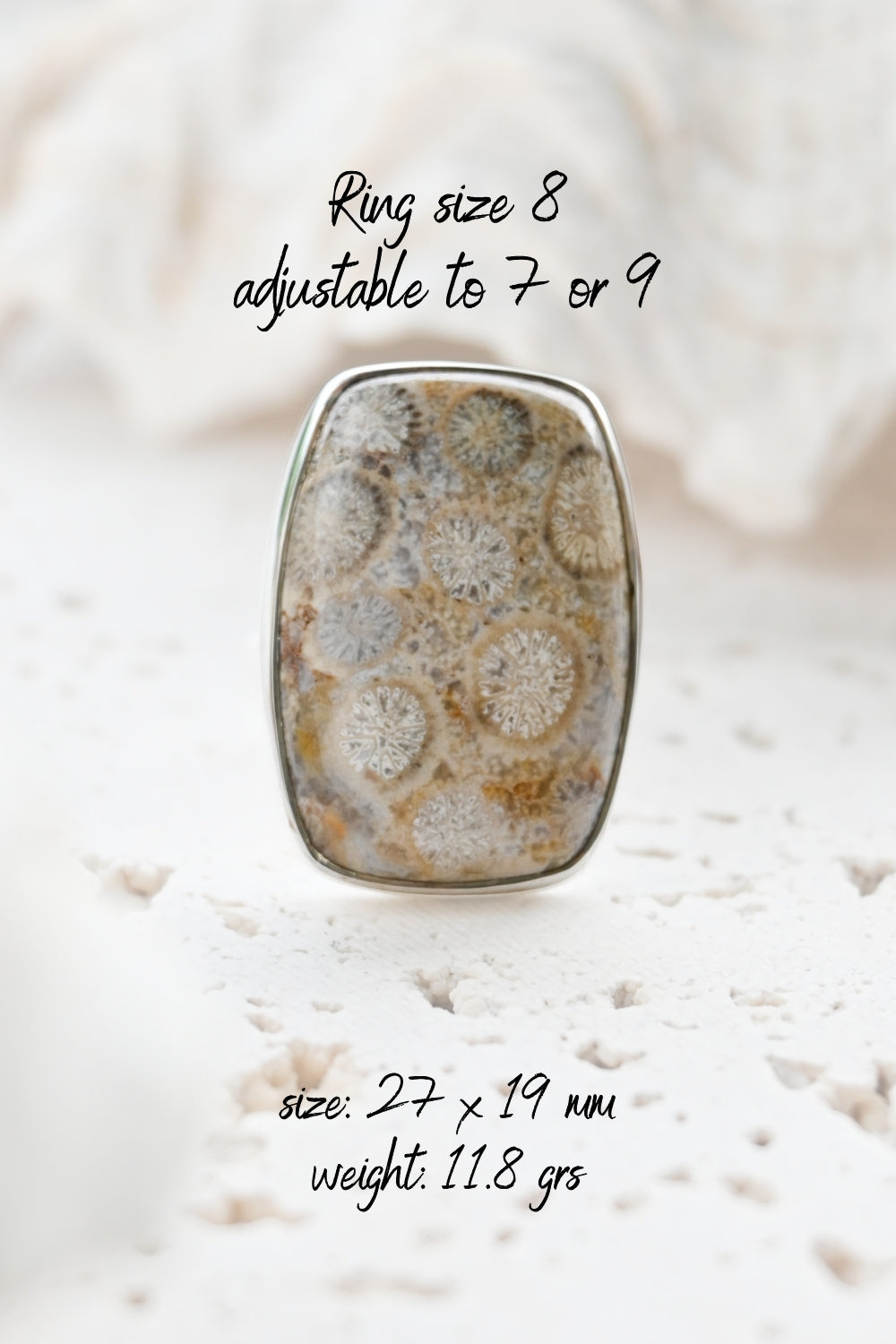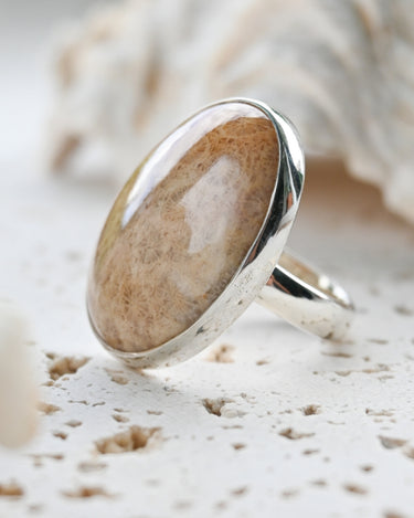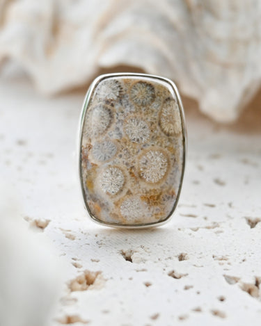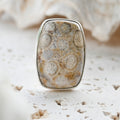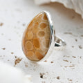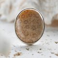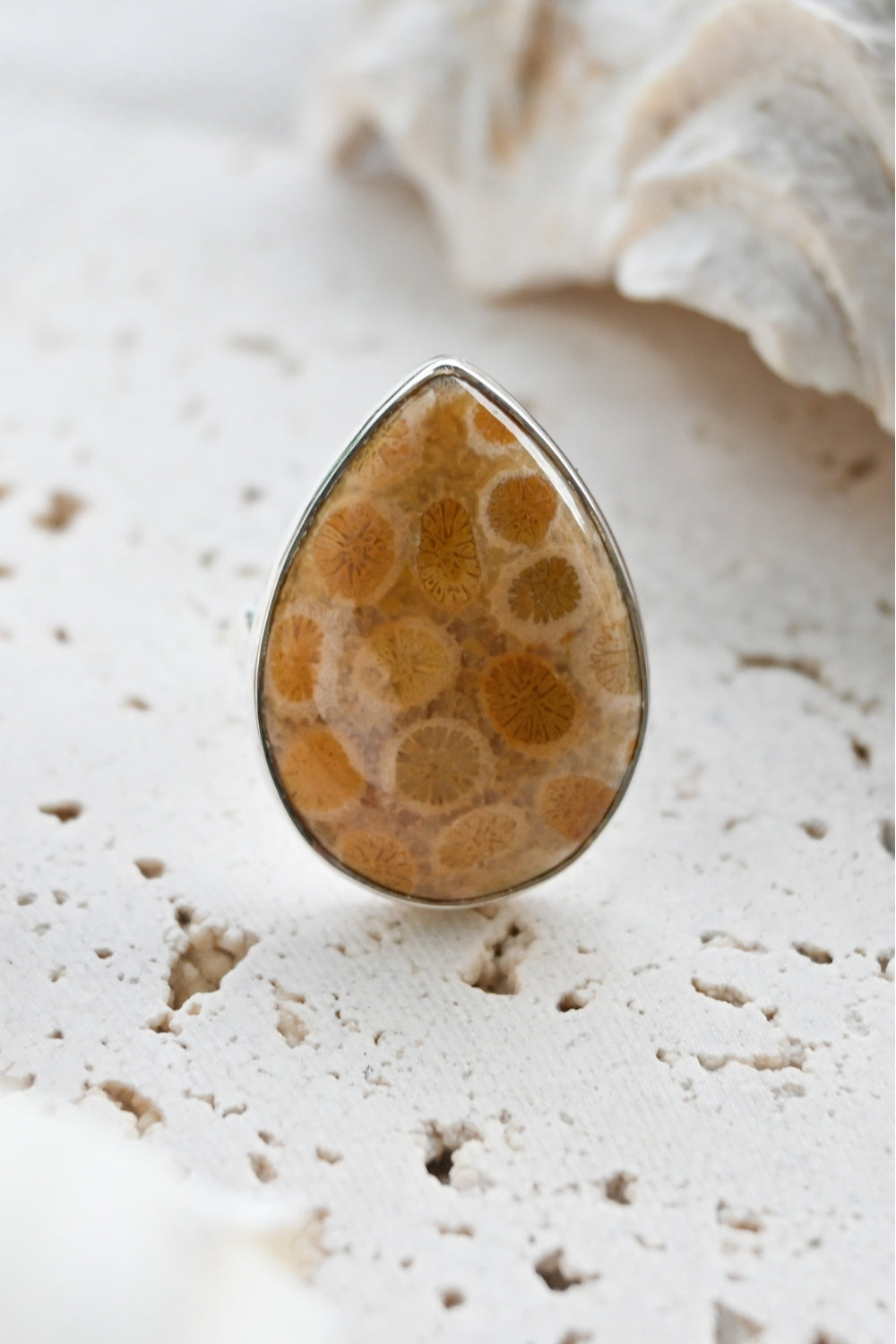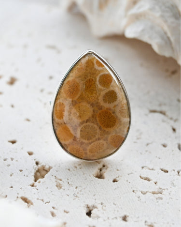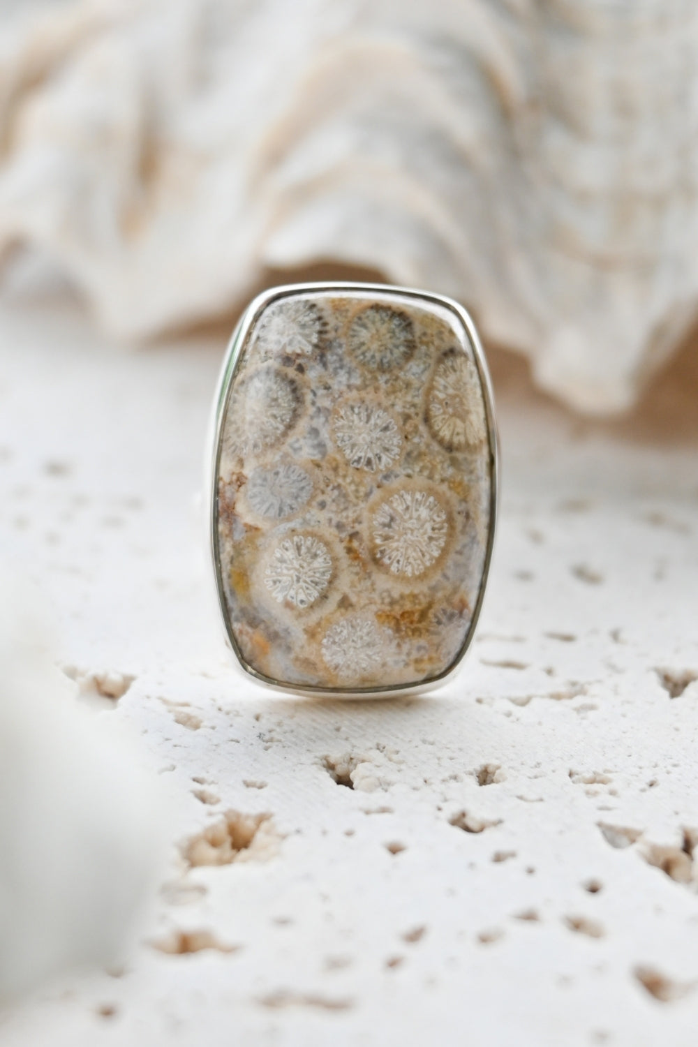 Each piece is handcrafted in sterling silver and set with natural fossilized coral, a gemstone created when prehistoric corals slowly transformed into stone through the gentle process of mineralization.