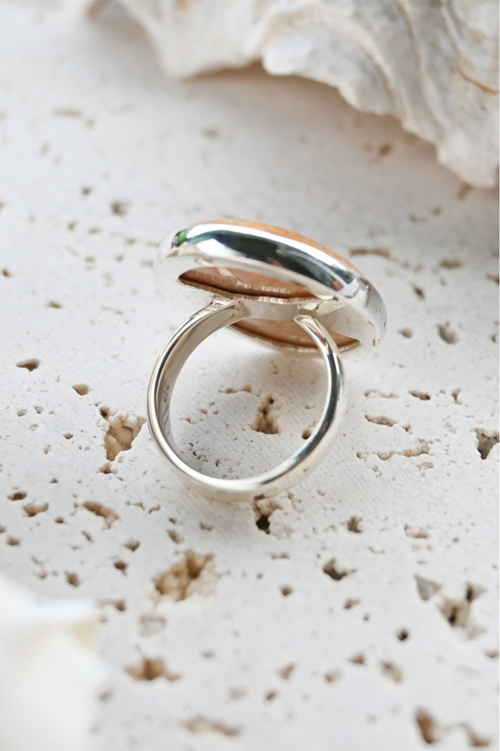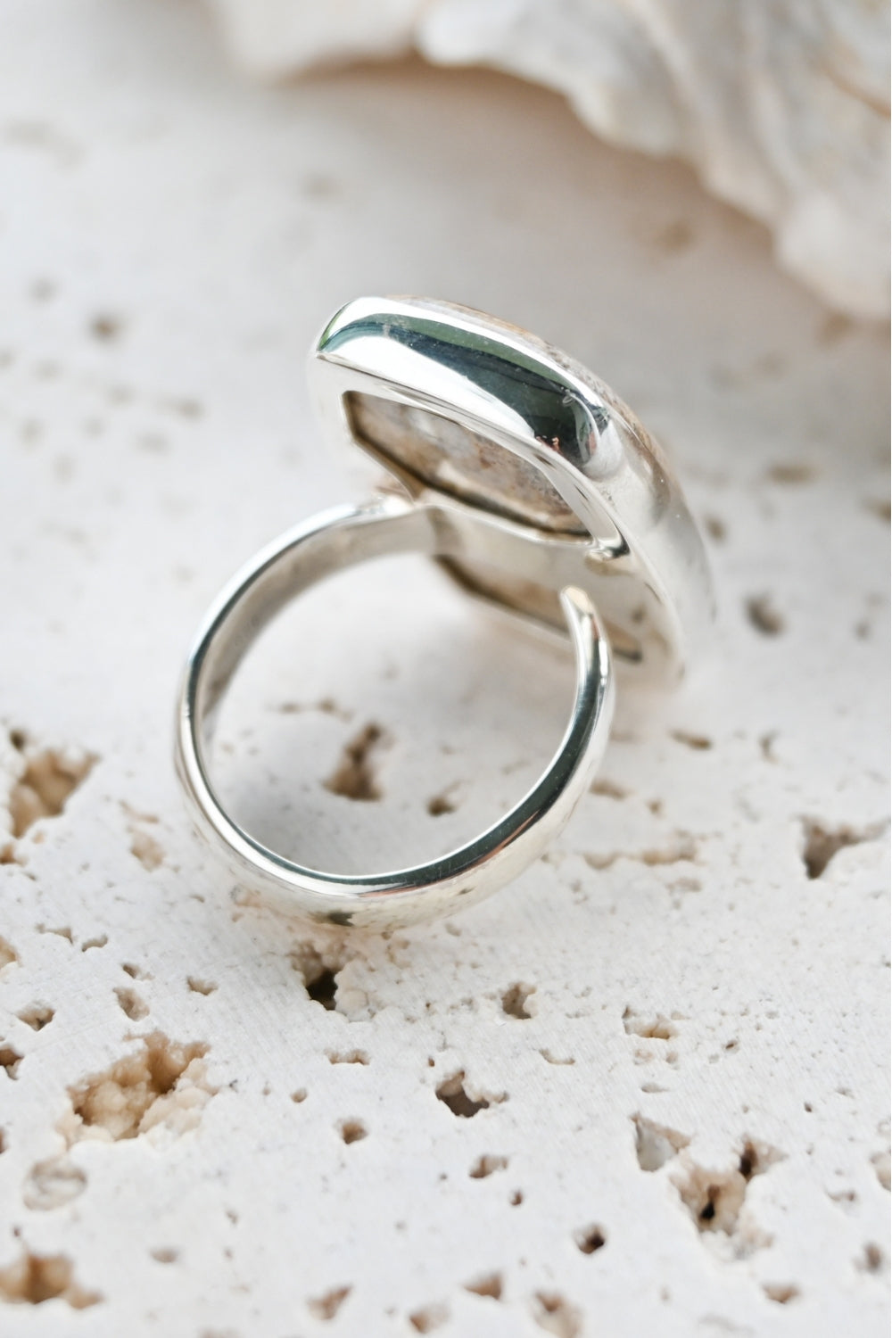 With its neutral tones and organic textures, this ring is a timeless statement. A blend of strength and serenity, shaped by nature and finished by hand.