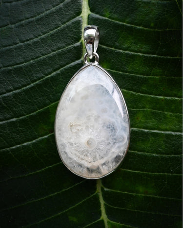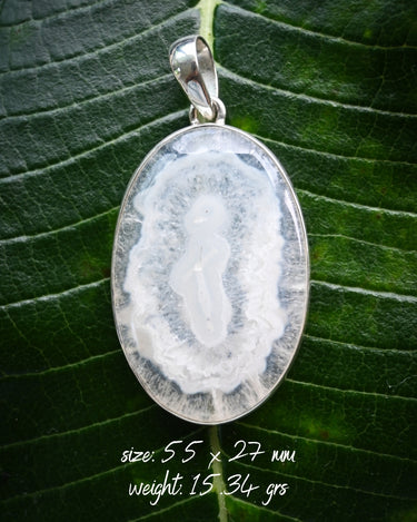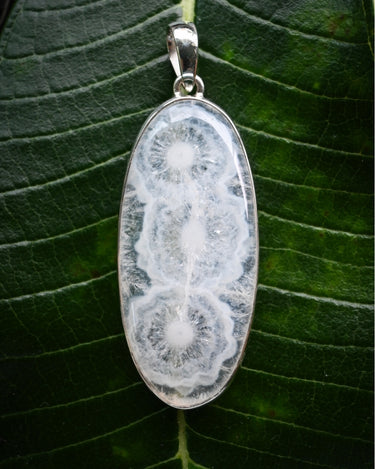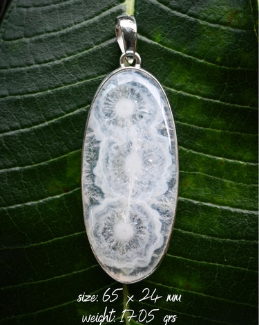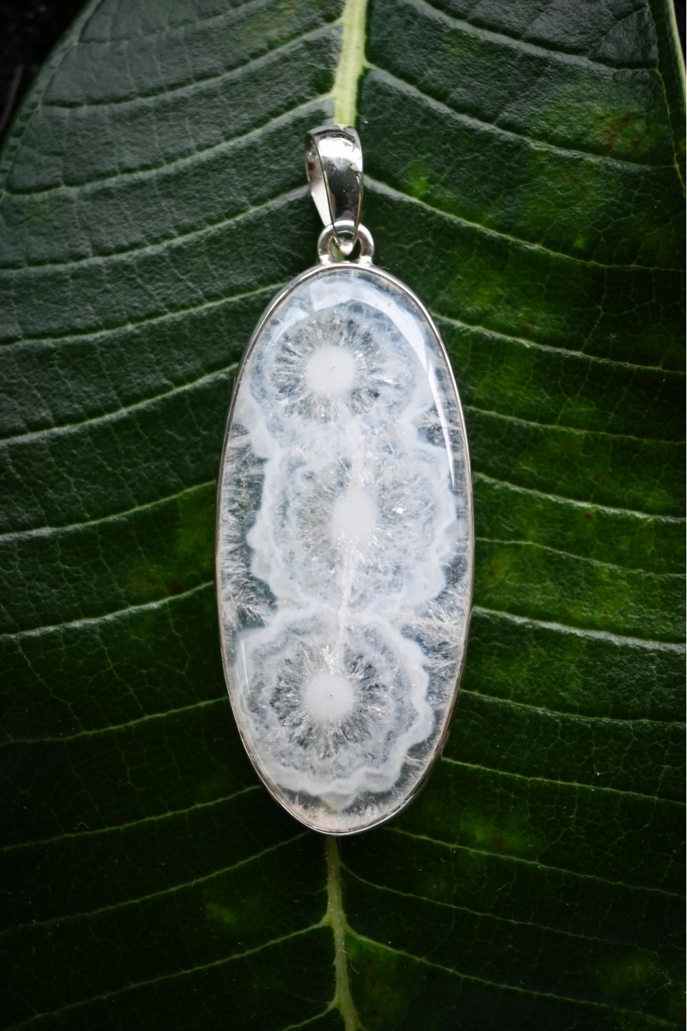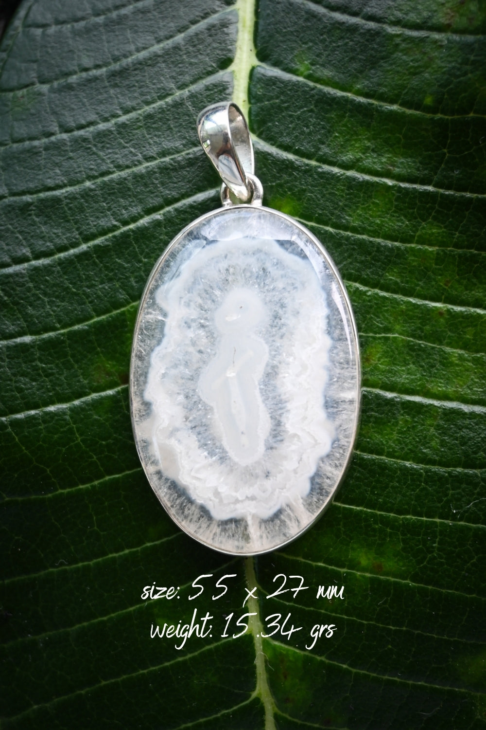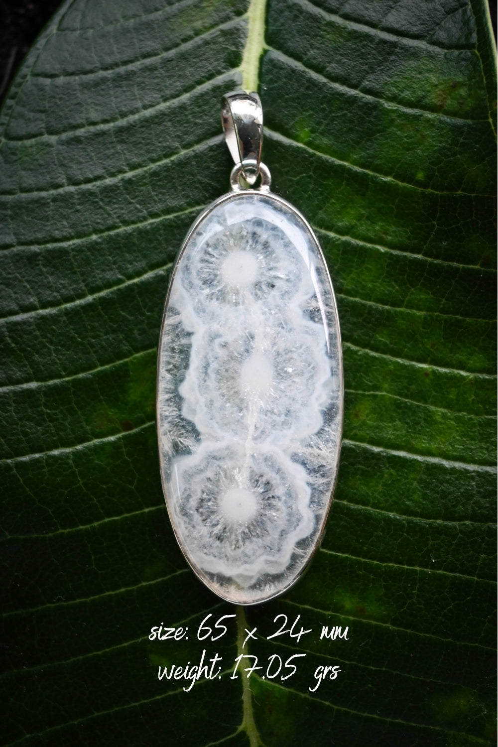 Handcrafted in sterling silver, this pendant showcases the celestial beauty of Polar Quartz: a crystal known for its frosted transparency and intricate inner formations that resemble ice flowers or distant stars.