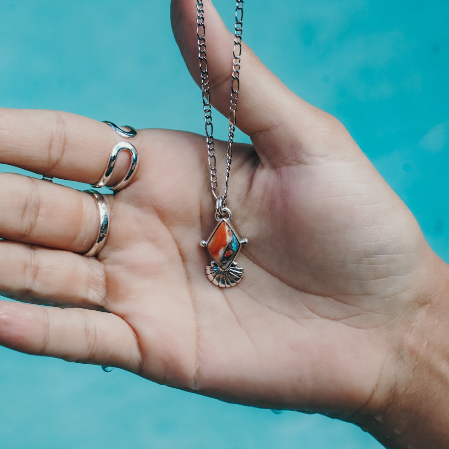 Oyster Mohave Turquoise is a natural stone so shades and tones of blue and oranges vary from one piece to another. If there is a stone shade you would prefer, please let us know, by adding a note to your order. We will do our best to accommodate your preference. Thank you!