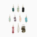 Clear Quartz, Green Aventurine, Blue Pyrite, Light Blue Amazonite, Amethyst, Light Blue Howlite, Pink Aventurine, Black Onyx - Height: 12 mm plus ring 5 mm. Gemstone diameter: 4 mm