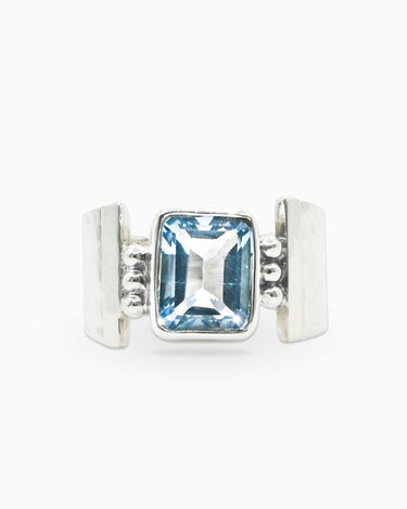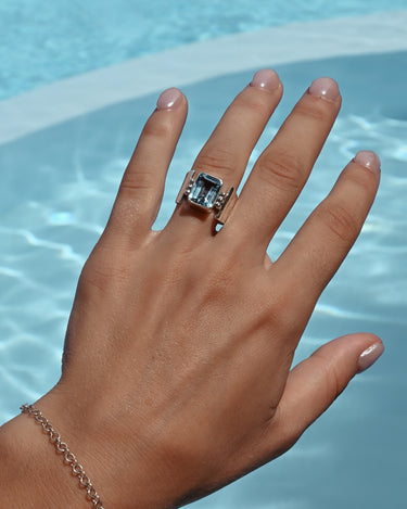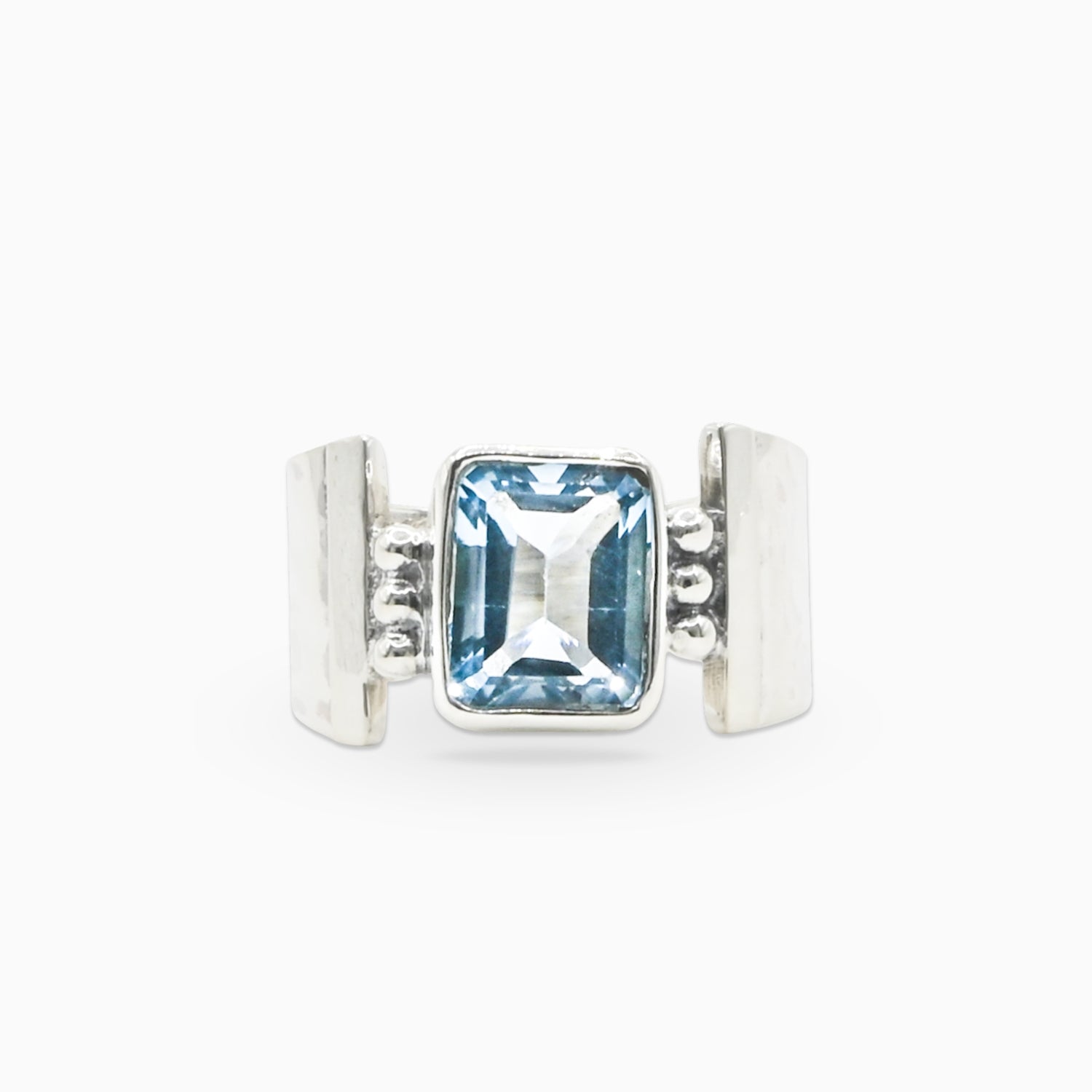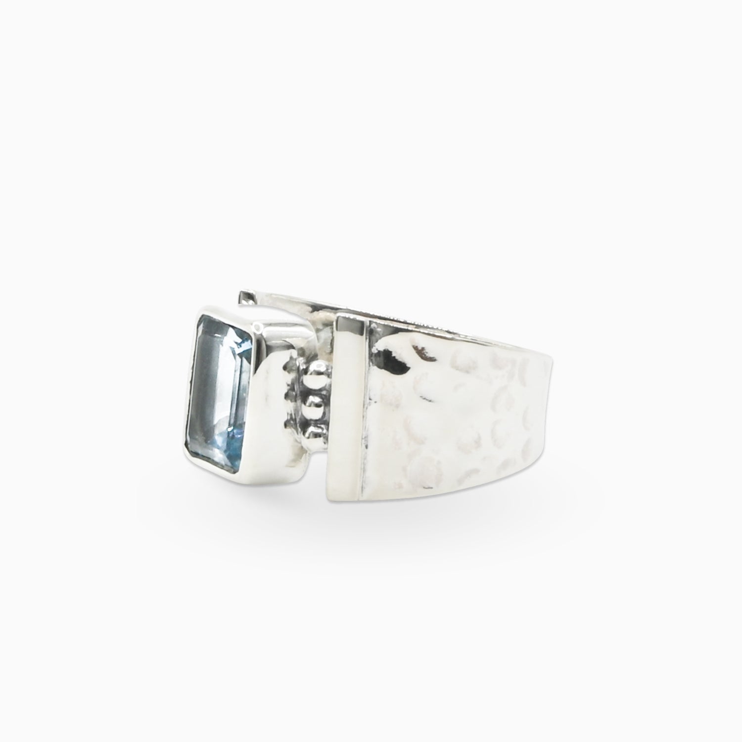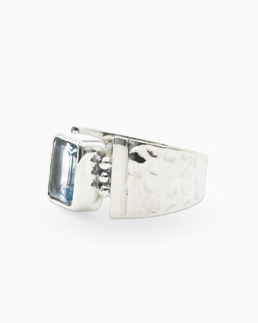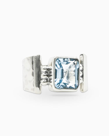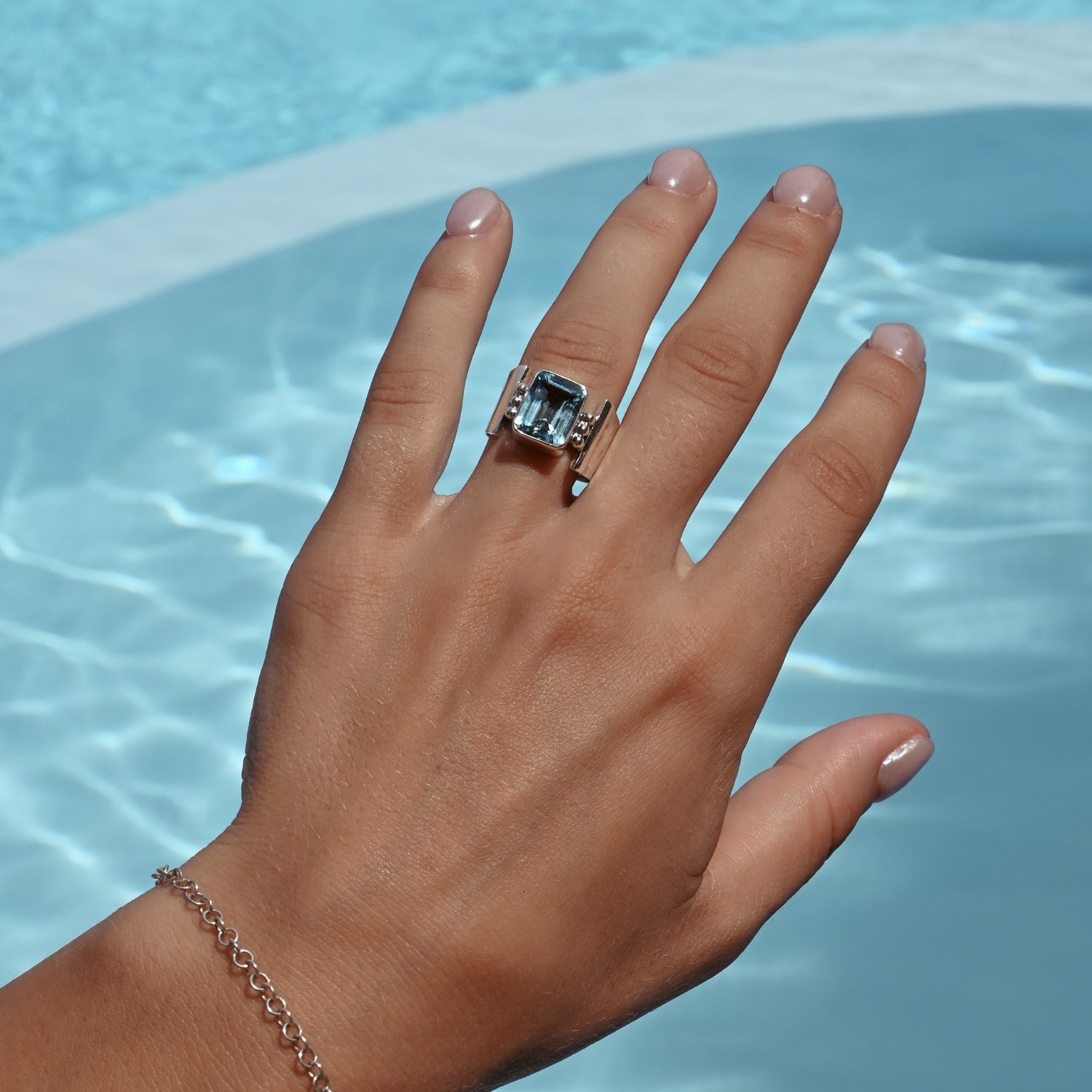 Named after the sea nymph who embodied freedom and allure, the Calypso Ring is a statement of bold elegance. Handcrafted in sterling silver with a textured band and a mesmerizing blue topaz at its center, it captures the essence of the untamed sea: powerful, captivating, and endlessly magnetic.