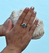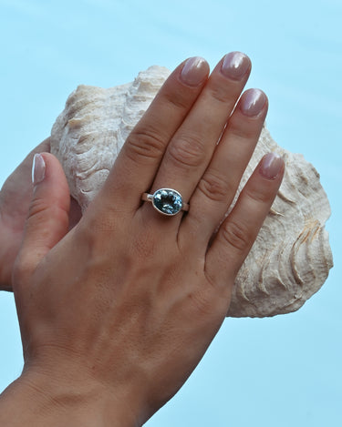 Named after the Chinese goddess of the sea, the Mazu Ring carries the tranquil power of the ocean’s depths. Handcrafted in sterling silver and crowned with a radiant blue topaz, it reflects the calm, guiding light that Mazu offered to those adrift at sea.